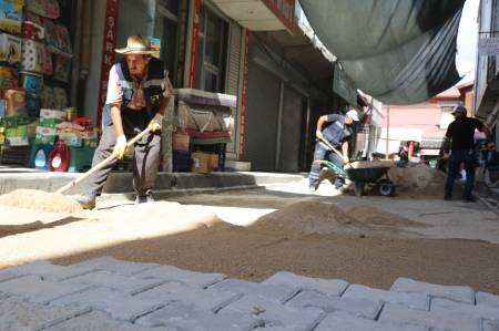 Ekipler, 60 metre uzunluğunda ve 5 metre genişliğindeki toplam 300 metrekarelik alanda kilitli parke taşı yenileyerek yolu araç ve yaya trafiğine açtı.