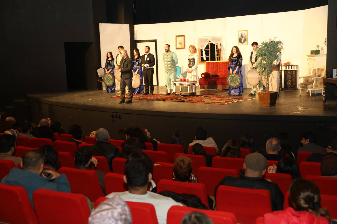 Kürtçe sahnelenen oyun, izleyicilere keyifli anlar yaşatarak salonu kahkahaya boğdu.