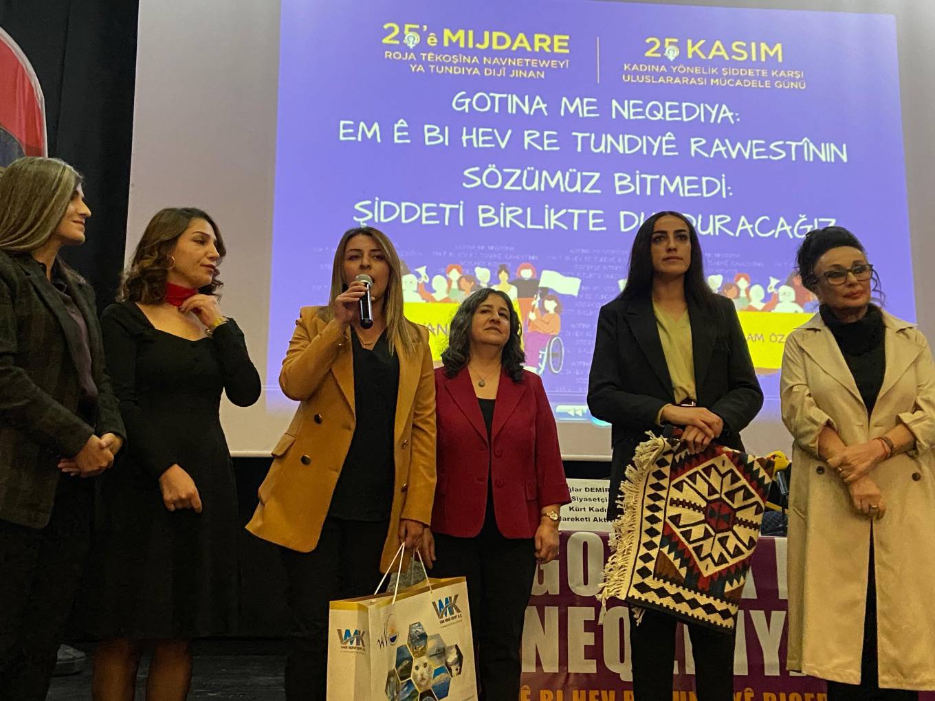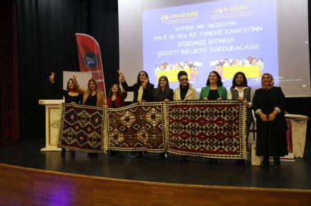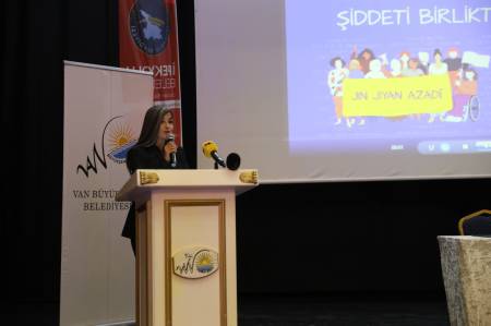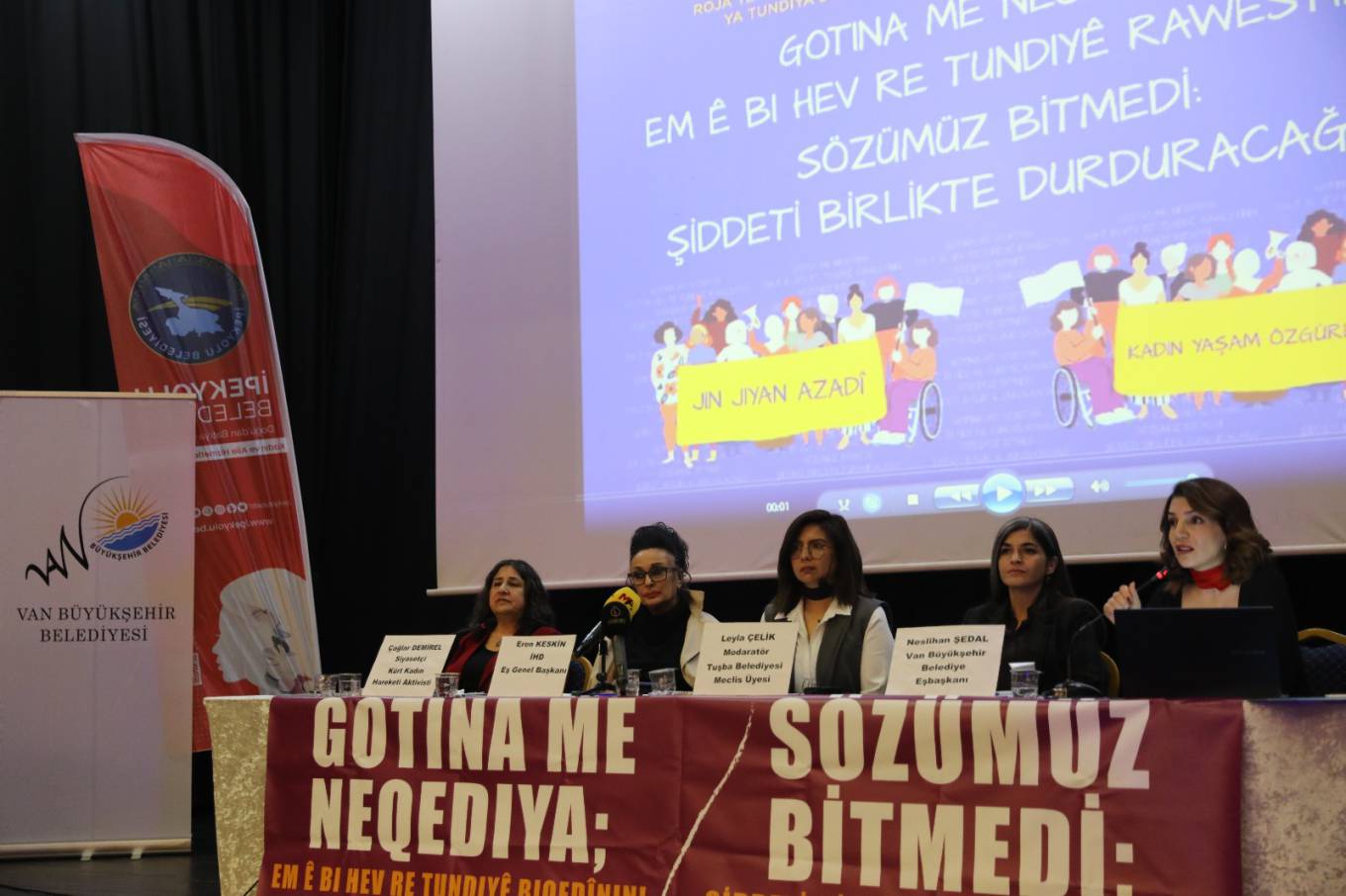 25 Kasım Kadına Yönelik Şiddete Karşı Uluslararası Mücadele Günü’ne ilişkin Van Büyükşehir Belediyesi ve İpekyolu Belediyesi ortaklığıyla “Sözümüz bitmedi şiddeti birlikte durduracağız”paneli düzenlendi. Nuda Kültür Merkezinde düzenlenen panele Büyükşehir Belediyesi Eşbaşkanı Neslihan Şedal, İpekyolu Belediyesi Eşbaşkanı Canan Uzunay, konuşmacılar ise İnsan Hakları Derneği (İHD) Eşbaşkanı Eren Keskin katıldı. Panelin medaratörlüğünü Tuşba Belediye Meclis Üyesi Leyla Çelik yaparken panele binlerce kadın katıldı.