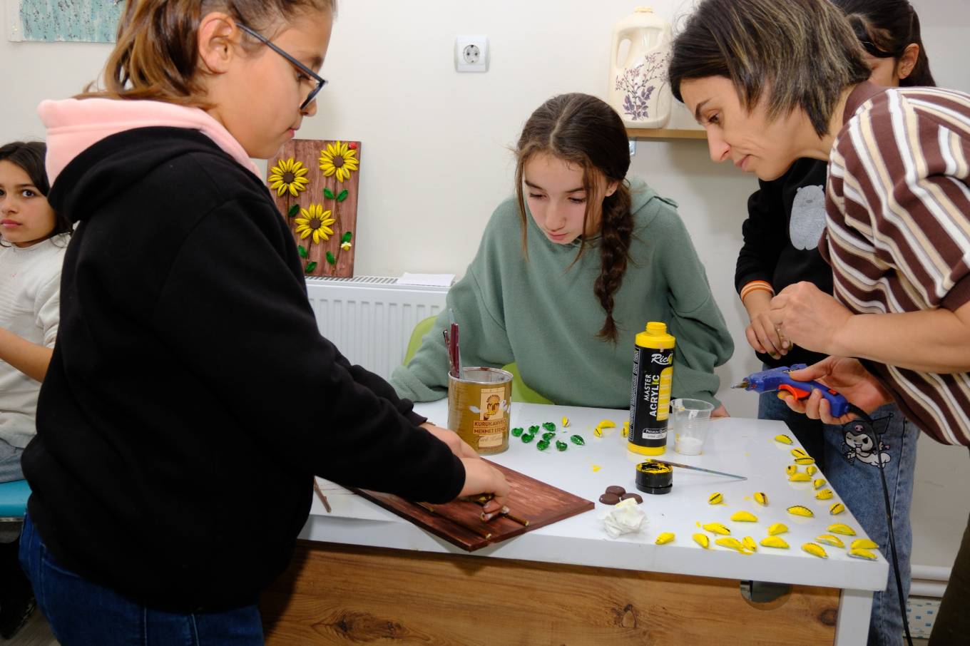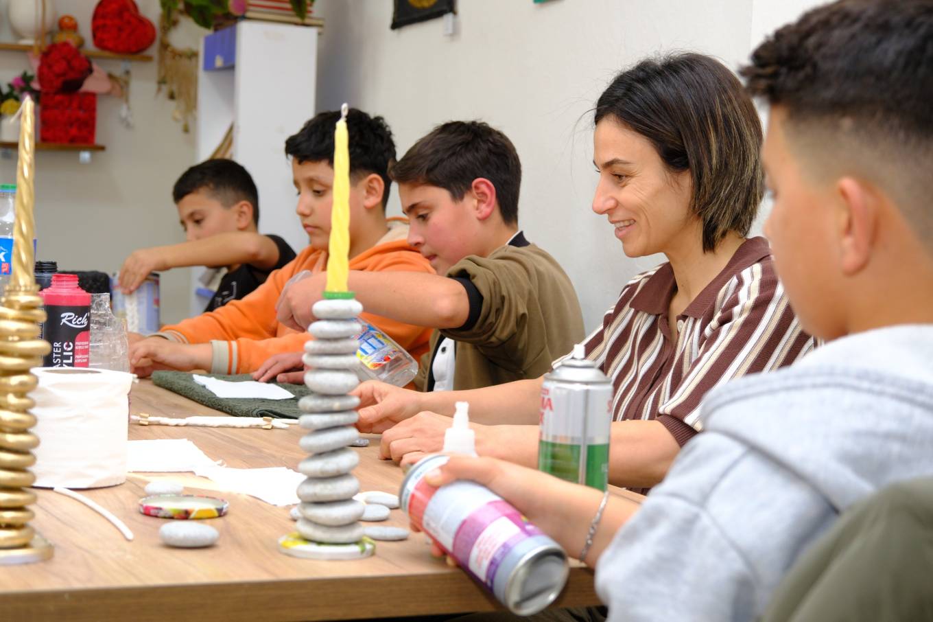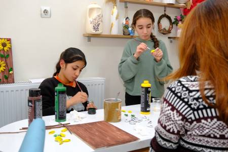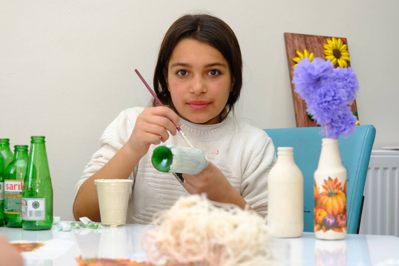 “Burada uğur böceği ve kelebekler yapmayı öğreniyoruz. Evdeki atıkları buraya getiriyoruz ve tasarlayarak başka ürünler ortaya çıkarıyoruz. Arkadaşlarım bana öğretiyor, ben de onlara öğretiyorum.”