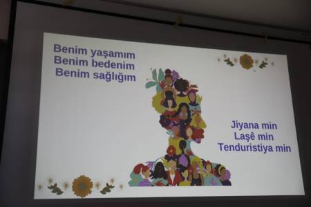 Sağlık emekçileri, meme kanserinin son günlerde artış gösterdiğini ve dünyada sekiz kadından birinin meme kanserine yakalandığını belirtti. Sağlık emekçileri ayrıca etkinliğe katılan kadınlara evlerinde“Meme muayenesini” nasıl yapabileceklerini uygulamalı anlattı. Kadınlar, sağlık emekçilerine deneyimlerini ve sorunlarını belirtti.