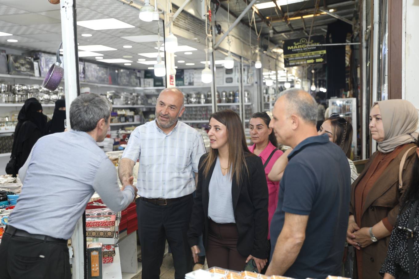 İpekyolu Belediye Eşbaşkanı Canan Uzunay ve Belediye Meclis Üyeleri, İpekyolu merkezde bulunan Büyük Rus Pazarı ve Avrupa Pazarı esnafını ziyaret etti.