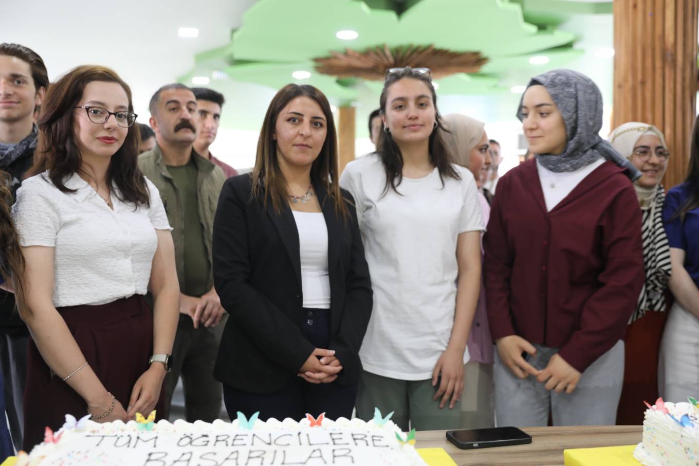 Ziyaretin ardından öğrenciler için hazırlanan pasta Eşbaşkan Uzunay tarafından kesildi ve öğrencilere ikram edildi.