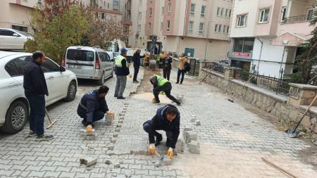 Cevdetpaşa Mahallesi’nde yeni açılan yolda parke taşı yapım çalışmaları devam ederken, mahalle içi ulaşım ağının daha modern ve dayanıklı hale getirilmesi amaçlanıyor.