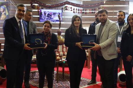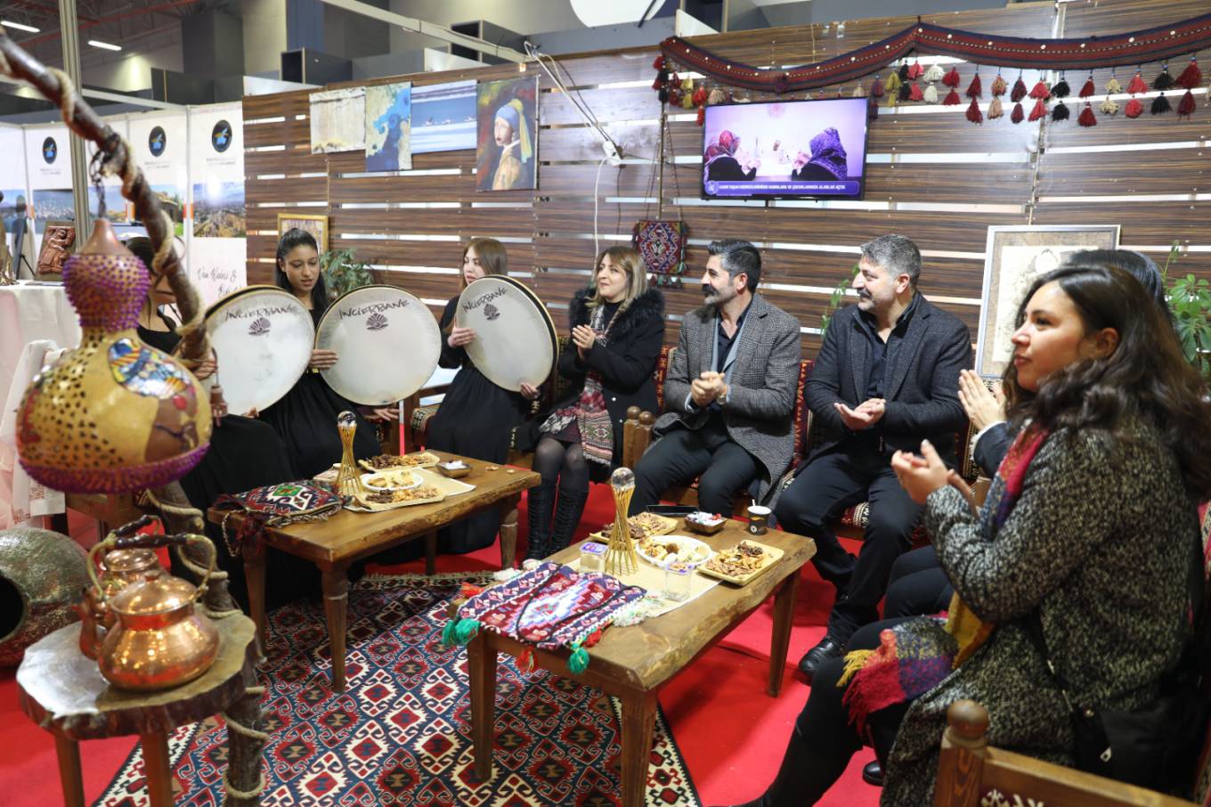 Büyük bir ilgiyle açılışı yapılan Uluslarası 14. Van Doğu Anadolu Turizm ve Seyahat Fuarında İpekyolu Belediyesi yerini alırken Eşbaşkan Canan Uzunay ise fuardaki standları tek tek ziyaret etti. Van Büyükşehir Belediyesinin öncülüğünde düzenlenen Uluslarası 14. Van Doğu Anadolu Turizm ve Seyahat Fuarı, renkli görüntülerle başladı. Fuara, Büyükşehir Belediye Eşbaşkanları Abdullah Zeydan Neslihan Şedal, Diyarbakır Belediye Eşbaşkanı Doğan Hatun, Akdeniz Belediye Eşbaşkanı Hoşyar Sarıyıldız, İpekyolu Belediye Eşbaşkanı Canan Uzunay, bölge ve ilçe belediye eşbaşkanları, STK temsilcileri, Van Kent Konseyi temsilcileri, TÜRSAB Doğu Anadolu Bölgesel Yürütme Kurulu Başkanı Cevdet Özgökçe, Van Otelciler ve Turizmciler Derneği Başkanı Çetin Demirhan katıldı. Fuar programı Dengbej dinletisiyle başlarken, halk oyunları gösterisiyle devam etti. TÜRSAD Başkanı Özgökçe, Van’ın 101 çeşit turizm ürünü olduğunu ve bu ürünlere sahip çıkılması gerektiğini söyledi. Daha sonra sırasıyla Diyarbakır Büyükşehir Belediye Eşbaşkanı Doğan Hatun, Akdeniz Belediye Eşbaşkanı Hoşyar Yıldız, Eşbaşkanlar Abdullah Zeydan ve Neslihan Şedal açılış konuşmalarını yaptı. Belediyenin el emeği ürünleri tanıtıldı Fuarda İpekyolu Belediyesi Kültür ve Sosyal İşler Müdürlüğü bünyesinde yöresel stand açıldı. Berivan Kültür ve Sanat Merkezinde yer alan Seramik atölyesinden ürünler sergilendi. Eşbaşkan Uzunay, fuardaki standları ziyaret ederek kültür turizmine katkılarından dolayı teşekkür etti. İpekyolu Belediyesinin Erbane dinletisiyle ziyaretçiler stand önünde halay çekerek keyifli anlar yaşadı. İpekyolu standına ziyaretler sürüyor İpekyolu standına başta Büyükşehir Belediye Eşbaşkanları Neslihan Şedal, Abdullah Zeydan ve Diyarbakır Belediye Eşbaşkanı Doğan Hatun ziyaret ederek Seramik Atölyesinde üretilen ürünler hakkında bilgi aldılar. İpekyolu Belediyesi üç gün süreyle açık olacak standına misafirlerini bekliyor.