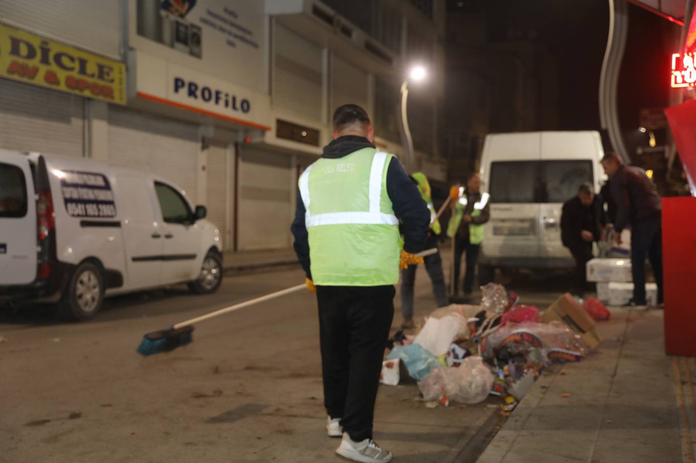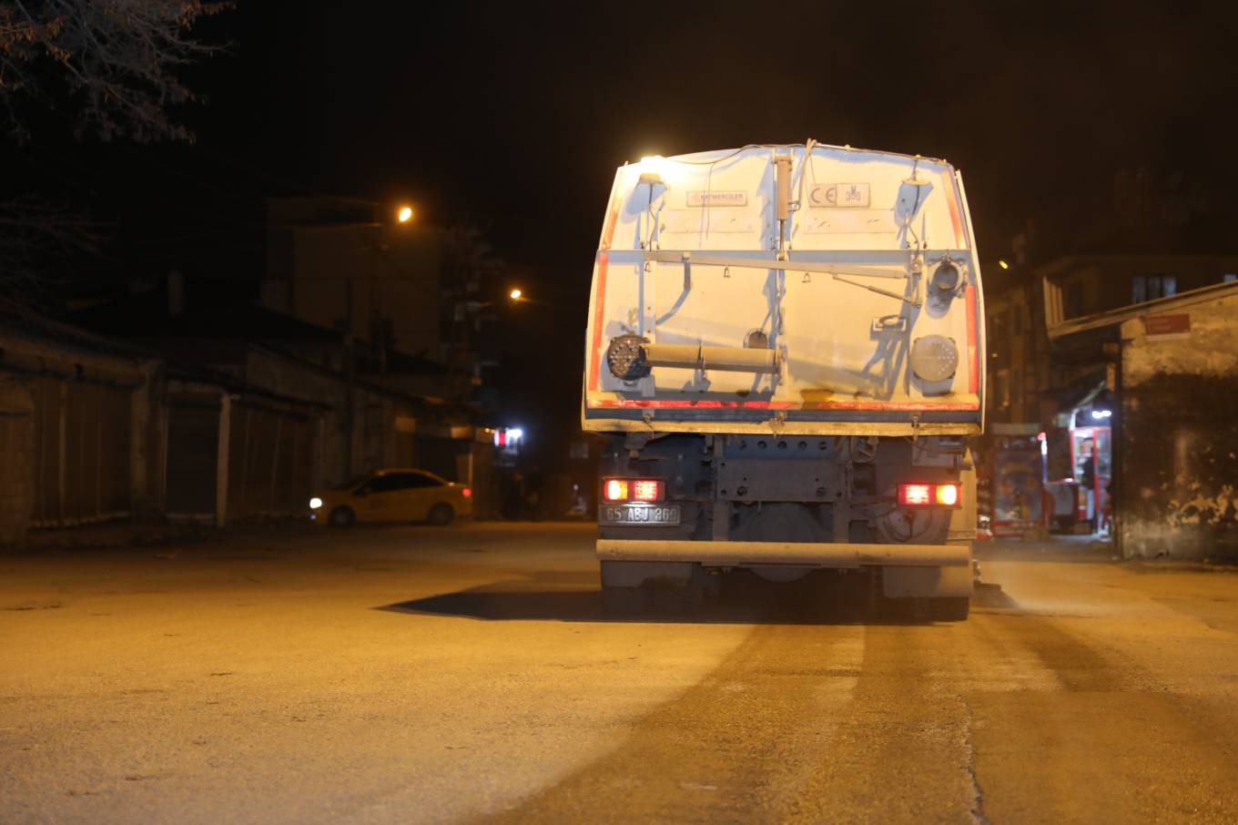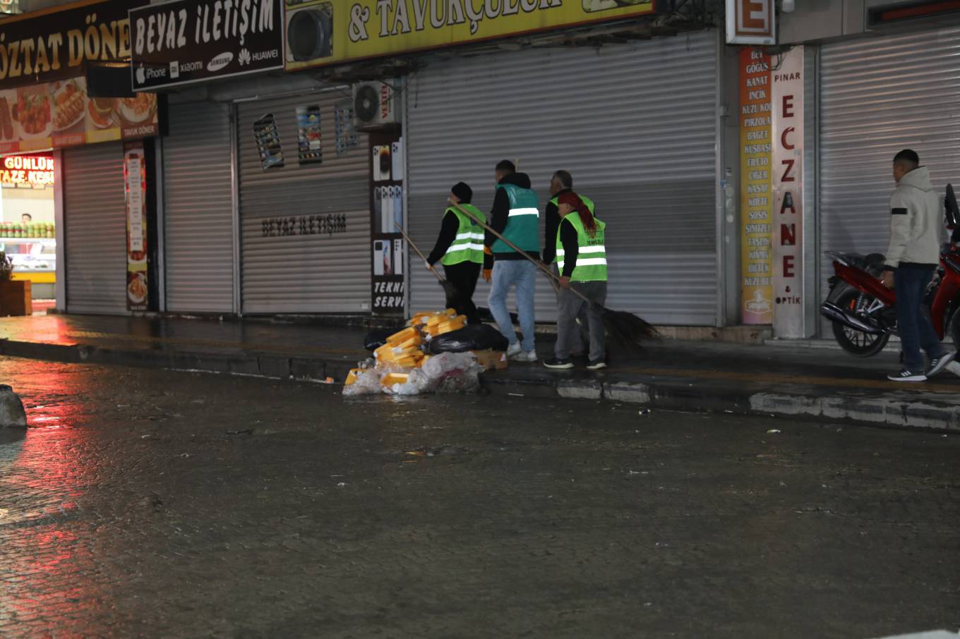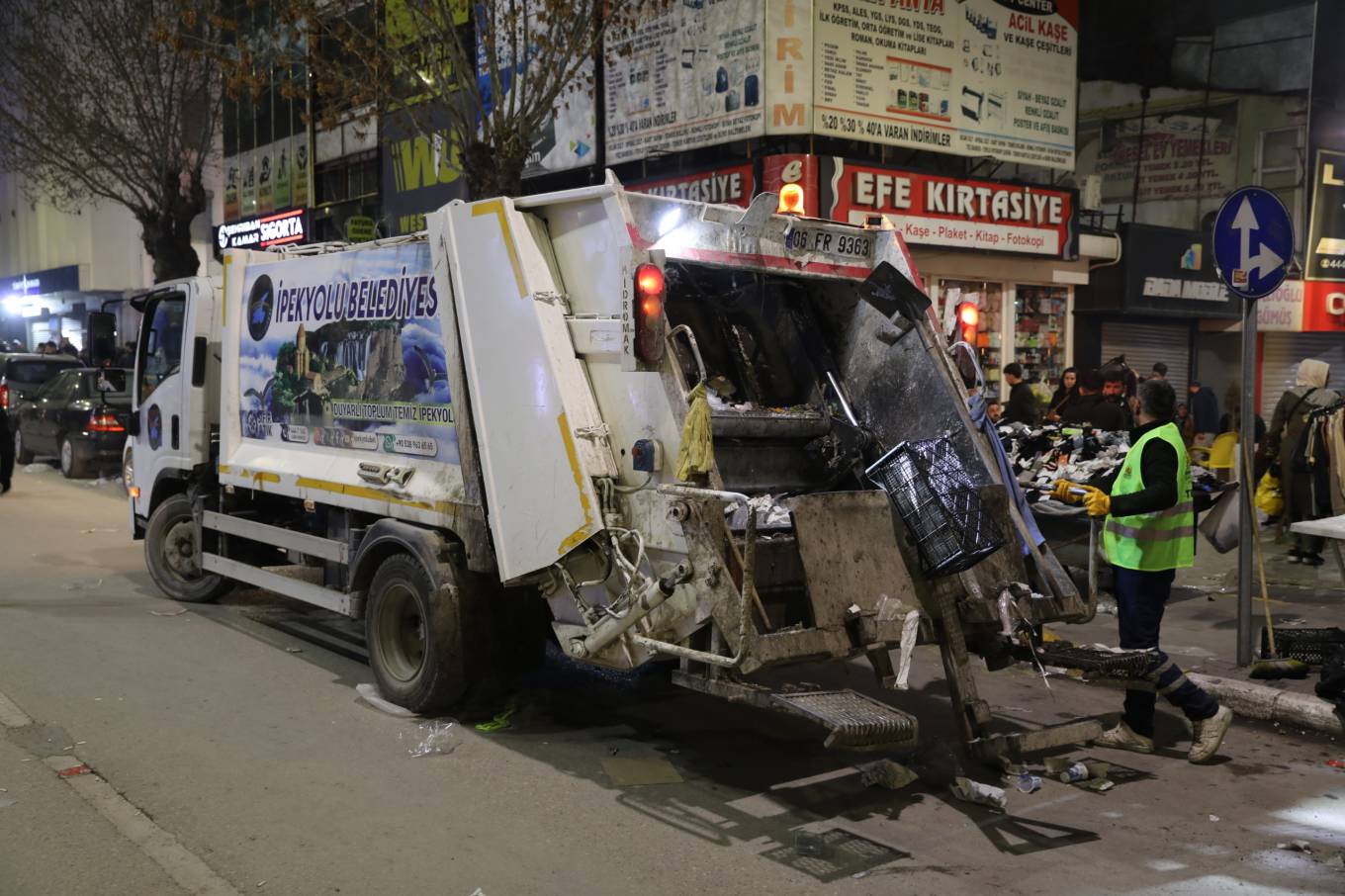İpekyolu Belediyesi Çevre Koruma ve Kontrol Müdürlüğü koordinasyonunda, Ramazan Bayramı öncesinde ilçe genelinde başlatılan kapsamlı temizlik seferberliği, bayram gecesi de aralıksız devam etti. Bayram alışverişinin yoğun olarak yapıldığı çarşı merkezi, tüm tezgah ve dükkanların kapanmasının ardından yapılan çalışmalarla temizlendi.