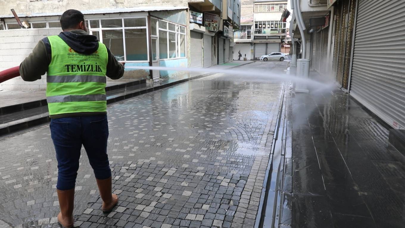 Bayram sonrasında kirlenen çarşı merkezinde, bugün de yıkama çalışmaları devam edecek.