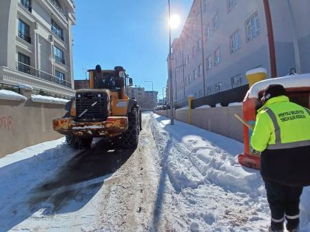 Hacıbekir Mahallesindeki tüm sokaklarda karla mücadele çalışmaları devam ediyor.