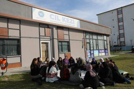 Atölyede ÇIL KEZİ’nin kuruluş amacı, işlevi ve kadınlara ulaşmadaki önemi Sosyolog Gurbet Tanışkaya tarafından aktarıldı. Tanışkaya, merkezin kadınlara sosyal ve psikolojik alanda destek sunduğunu belirtti.