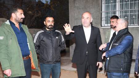 alanda yürütülen çalışmaları yerinde inceleyerek ekiplerden bilgi aldı.