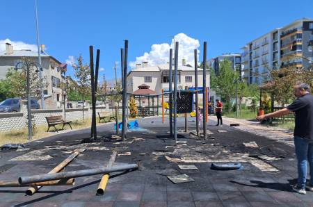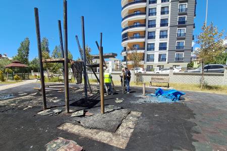 İpekyolu Belediyesi Eşbaşkanı Cevdet Altındağ, oyun grubu ve kauçuk zemini yanan parkta incelemelerde bulunarak zarar gören çocuk oyun alanını eski haline getirmek için hemen çalışmalara başlanacağını belirtti.