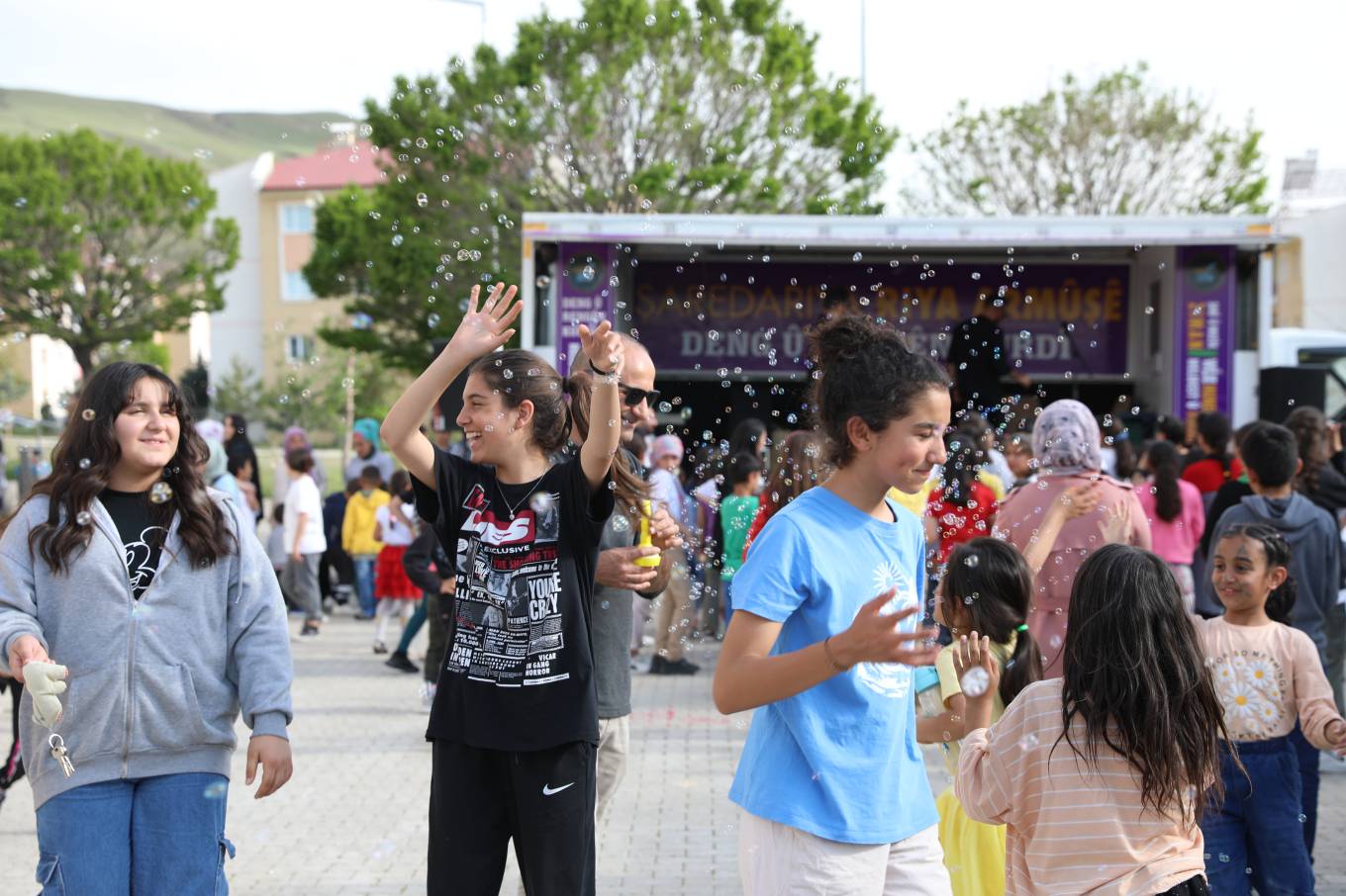 Şenlik alanına kurulan sahne aracında canlı müzik ile keyifli vakit geçiren çocukların eğlencelerine İpekyolu Belediyesi Eşbaşkanları da katılım sağladı.