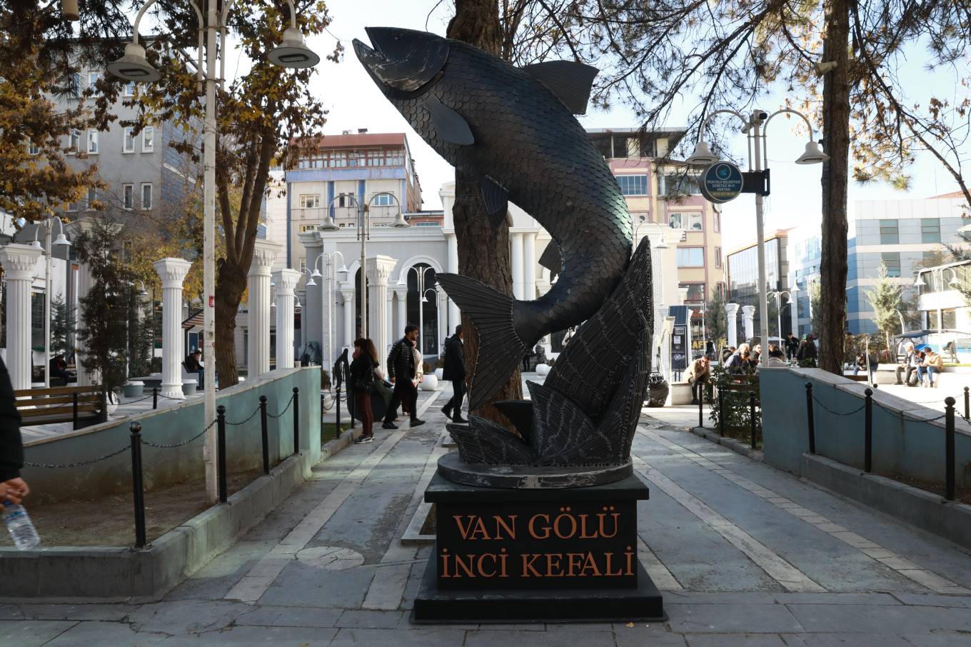 Serginin dikkat çeken parçalarından biri, Van Gölü’nün simgesi olan İnci Kefali heykeli. Sanatçı Ali Mutii, geri dönüşüm malzemelerini yeniden şekillendirerek hem doğaya gönderme yapıyor hem de metalin dönüşüm gücünü izleyiciyle buluşturuyor.