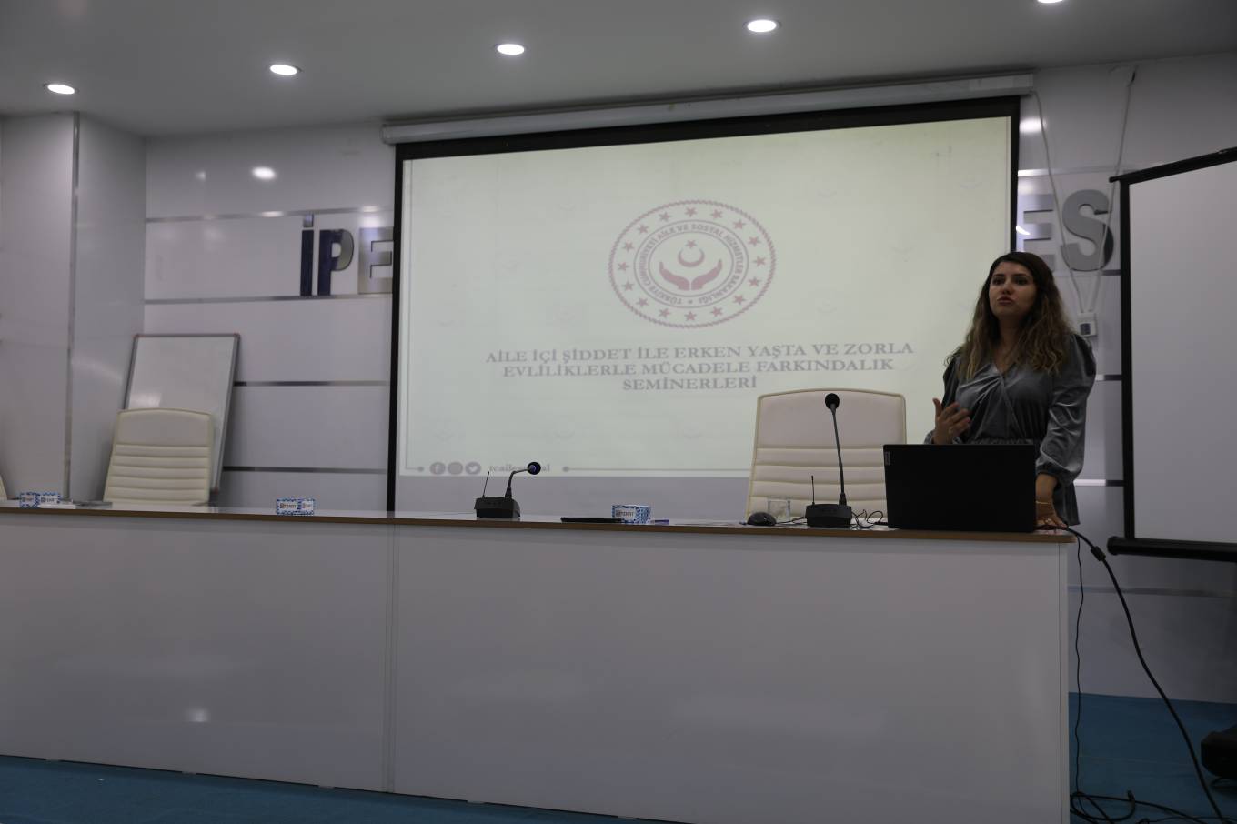 İpekyolu Belediyesi Kadın ve Aile Hizmetleri Müdürlüğü tarafından “Kadına Yönelik Şiddetle ve Çocuk Yaşta Zorla Evliliklerle Mücadele Eğitimi” düzenlendi. Belediye Konferans Salonu’nda gerçekleştirilen eğitime Eşbaşkan Canan Uzunay, meclis üyeleri ve belediye personeli katıldı.