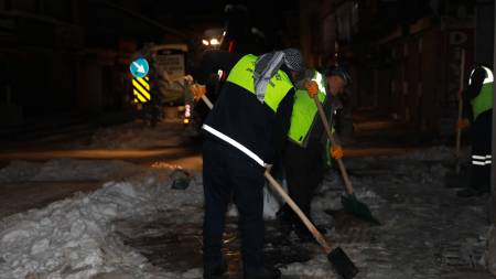 Ekipler, kentin işlek olan sokaklarında yol ve kaldırım temizleme çalışmalarını gece boyunca sürdürdü. Kaldırımlarda oluşan buzlanma ve yollarda ulaşıma engel olan kar birikintilerini temizleyen ekiplerimiz, çalışmalarını aralıksız sürdürüyor.
