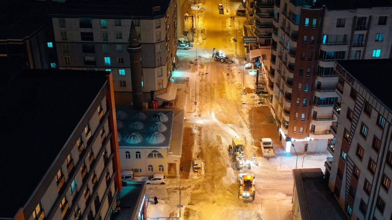 Gece boyunca sabaha kadar süren yoğun çalışmalarla kent merkezindeki ana arterler, mahalle yolları, cadde ve sokaklar yeniden yaya ve araç trafiğine açıldı. Özveriyle çalışan ekiplerimiz, ulaşımın aksamaması için sahada olmaya devam edecek.