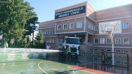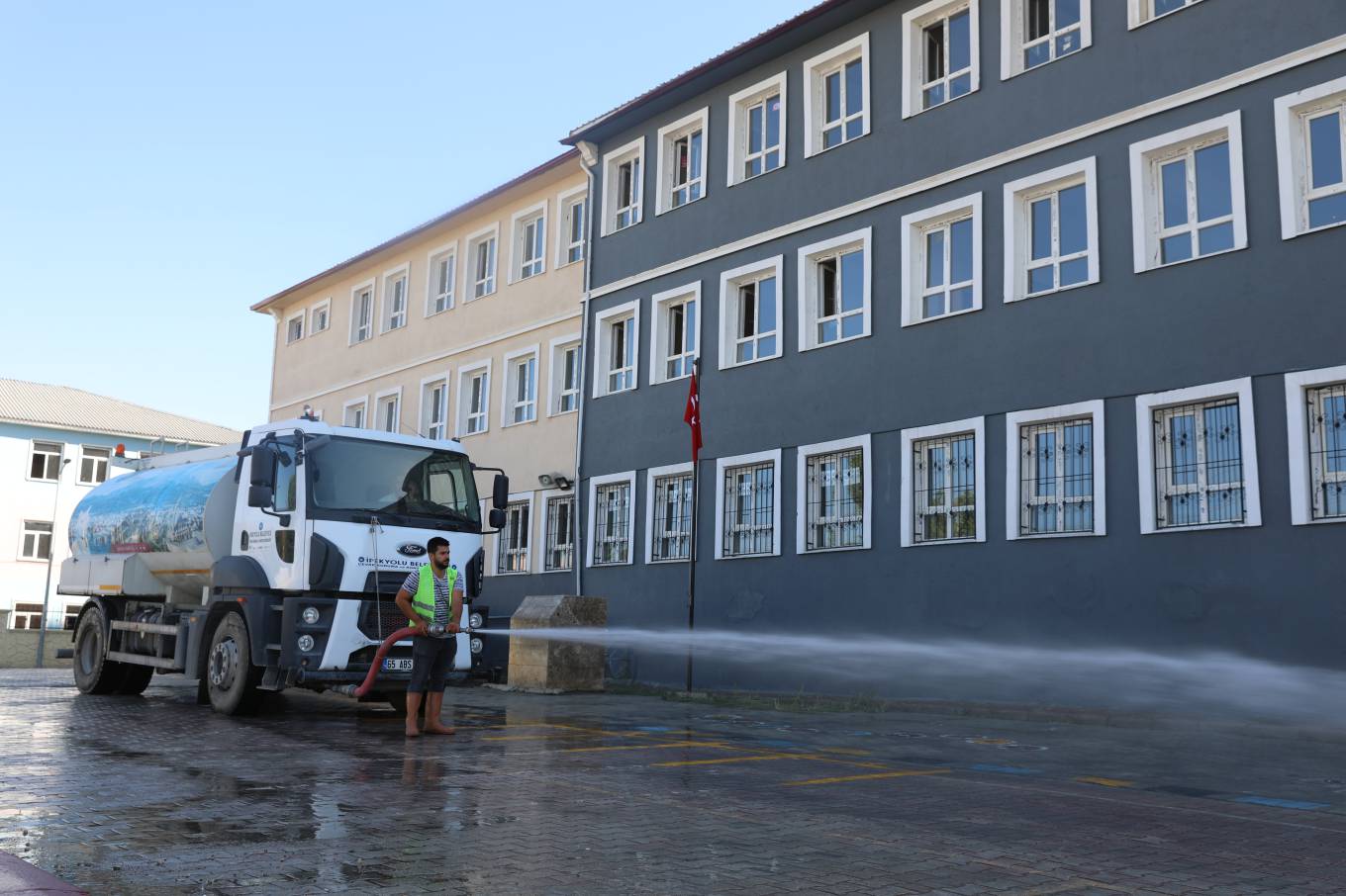 Bu kapsamda, dört farklı yıkama aracı kullanılarak yürütülen temizlik çalışmaları, büyük bir titizlikle gerçekleştiriliyor. Şimdiye kadar toplam 100 okulun yıkama işlemi tamamlandı. Yıkama araçları, okul binalarının dış yüzeylerinden, bahçelerine kadar geniş bir alanda etkili bir temizlik sağlıyor. Ayrıca, temizlik süreçlerinde kullanılan çevre dostu malzemeler ve tekniklerle, hem okullardaki hijyen standartlarının artırılması hem de çevresel sürdürülebilirliğin sağlanması hedefleniyor.