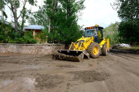 Fen İşleri Müdürlüğü ekipleri tarafından selden kaynaklanan toprak ve çamurun temizlenmesinde yoğun bir çaba sarf edildi.
