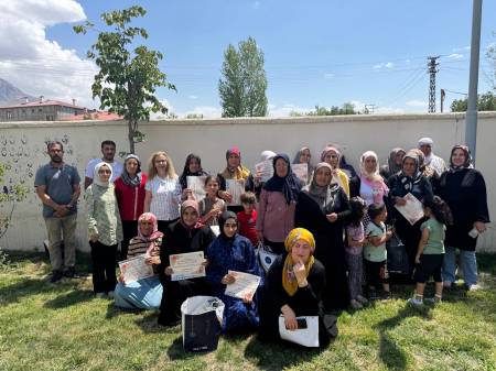 Bostaniçi Yaşam Merkezi bahçesinde düzenlenen etkinlikte kursiyerler, eğitmenler ve merkez çalışanları bir araya geldi. Kadınların emek ve çabalarının takdir edildiği buluşmada, kursu tamamlayan katılımcılara belgeleri takdim edildi.