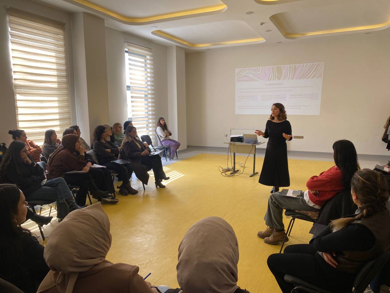 İpekyolu Belediyesi bünyesindeki Perperok Çocuk Akademisi’nde GABB Kadın Politikaları Müdürlüğünün katkılarıyla düzenlenen eğitime; belediyelerin kadın politikaları müdürlüklerinde görev yapan kadın çalışanlar katıldı. Eğitim programının ilk gününde; toplumsal cinsiyetin özgürleştirilmesi, kadın ekonomisinin güçlendirilmesi ve saha deneyimleri başlıkları ele alındı.