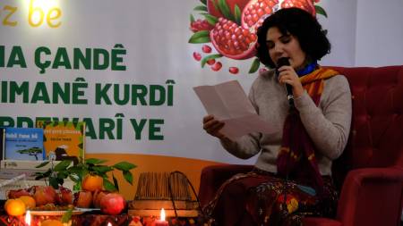 DEM Parti Dil Kültür ve Sanat Komisyonu Eşsözcüsü Heval Dilbihar, farklı kültürlerde de bu gecenin kutlandığını belirtti. Dilbihar, “Yelda” isimli şiiri Kürtçe olarak okudu. Ardından Murad Döner, Şahin Polat, Ramazan Aslan ve Aryen Ersever Kürtçe şiirler seslendirdi.
