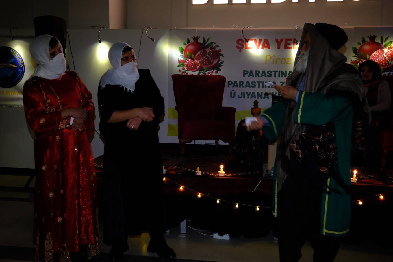 “Kose û Nare” adlı oyunu sahneleyen tiyatro ekibi, yöresel kıyafetler giyerek salondaki misafirlere küçük hediyeler dağıttı. Kutlama programı, Yelda gecesine yakışır şekilde halaylarla son buldu.