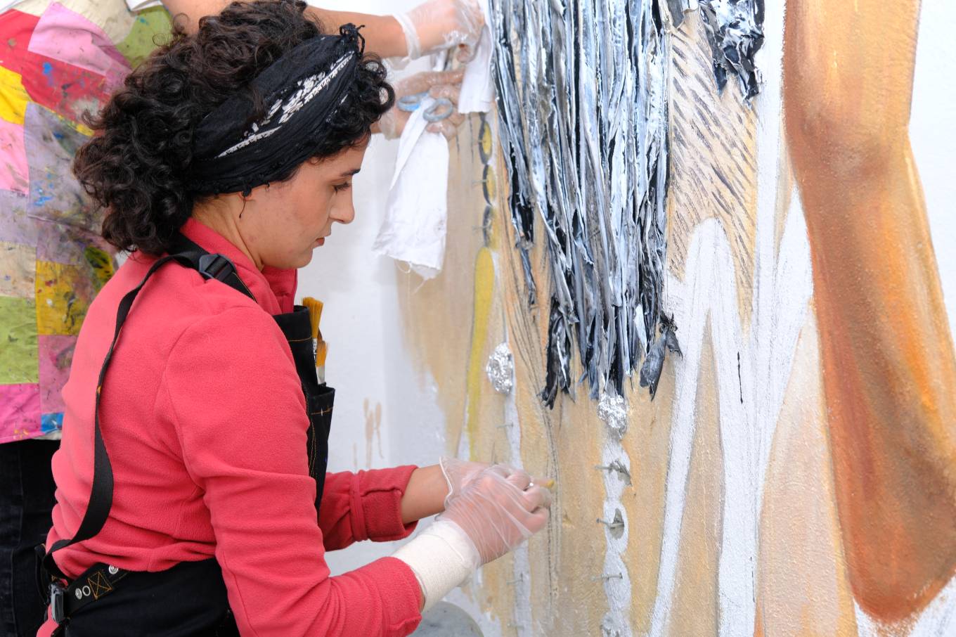 Bu çalışmalarda kumaş, tutkal, çivi, boya gibi birçok geri dönüşüm malzemesi kullandık. Hem estetik hem de dayanıklı olması için suya ve kış koşullarına uygun tekniklerle üretim yaptık. Bu yönüyle sokak sanatıyla geri dönüşümün birleştiği özgün bir çalışma ortaya çıktı.”