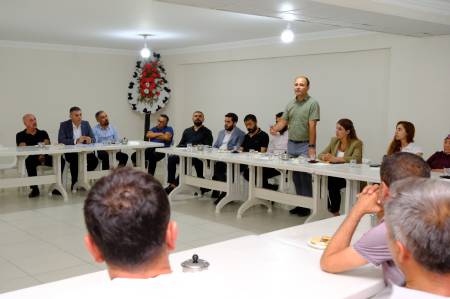Esendere-Gündoğdu Mahallelerimizdeki toplantının başkanlığını yürüten Eşbaşkanımız Cevdet Altındağ’a DEM Parti yöneticileri, meclis üyeleri, daire başkanları ve müdürler eşlik etti.